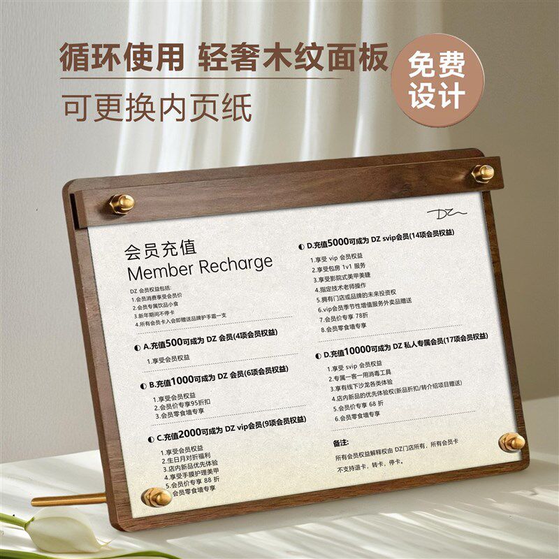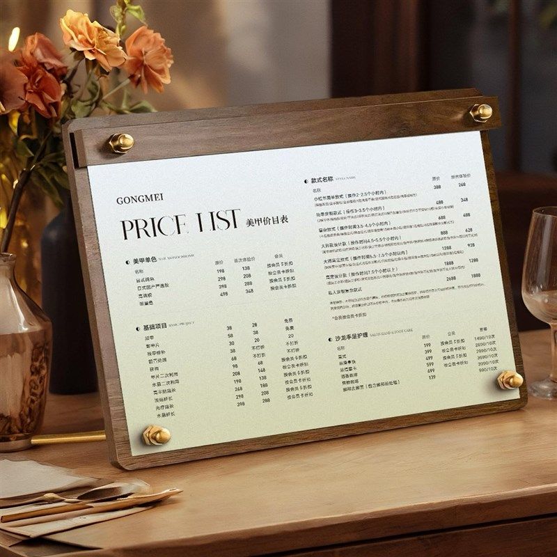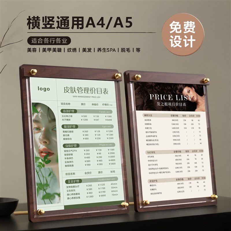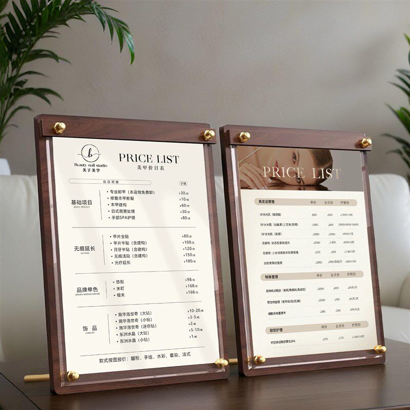美甲美睫价目表展示m牌美容院价格表设计定制桌面台卡充值活动桌