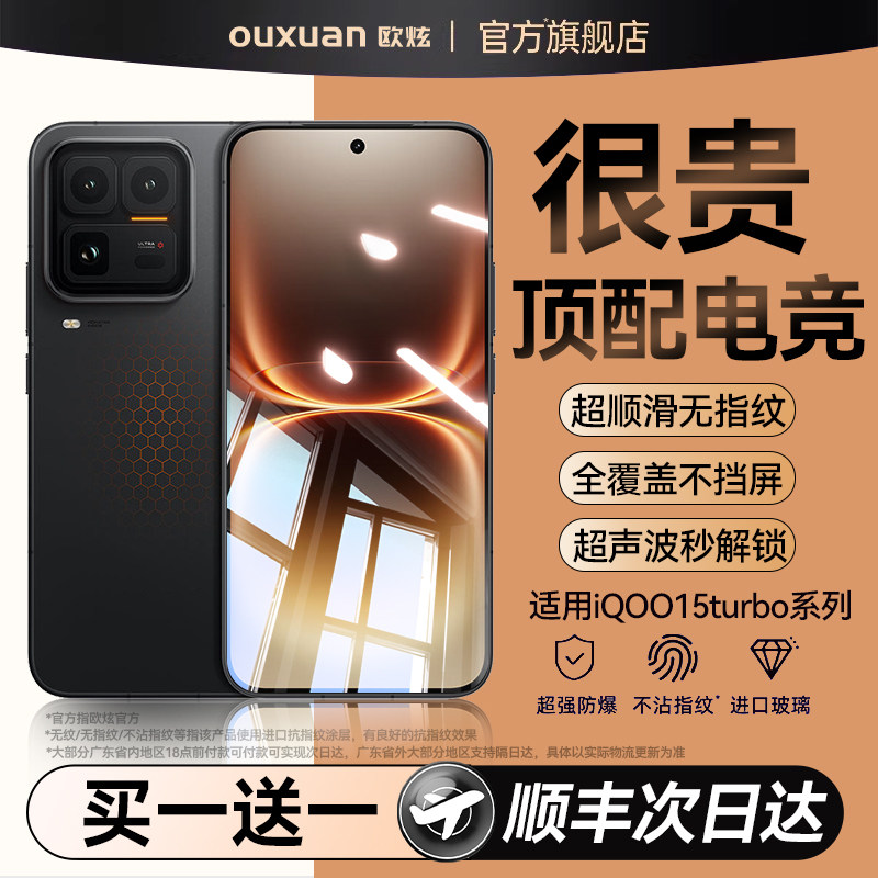 欧炫适用iqoo15ultra钢化膜iqoo15手机膜iqoo13手机钢化膜新款iqoo13超声波秒解锁vivoiqoo12屏幕保护膜全屏