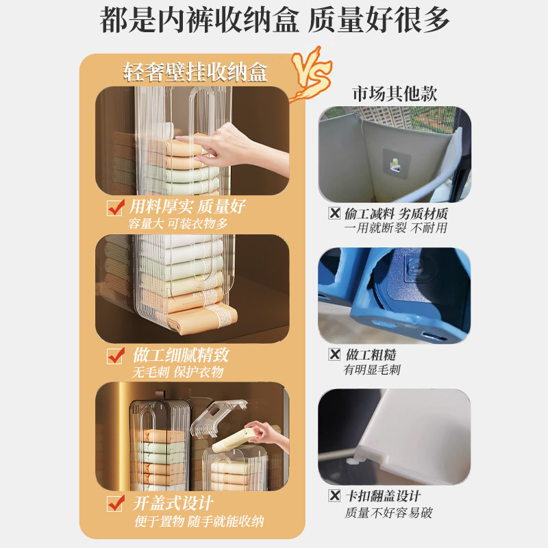 内裤收纳盒挂壁家用内衣袜子整理盒免打孔悬挂式贴身衣物收纳神器