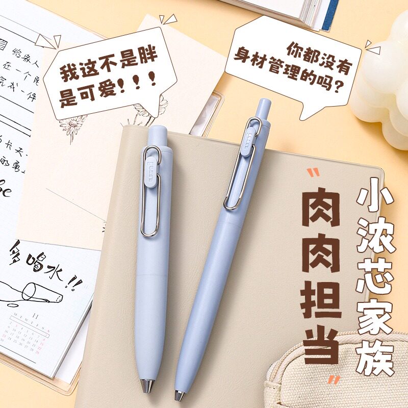 日本UNI三菱小浓芯P小胖笔小胖子二代中性笔胖嘟嘟0.5mm黑色高颜值子弹头短笔随身黑笔口袋笔迷你胖旗舰店