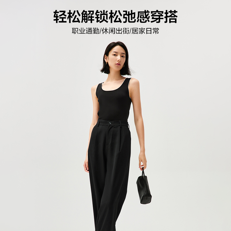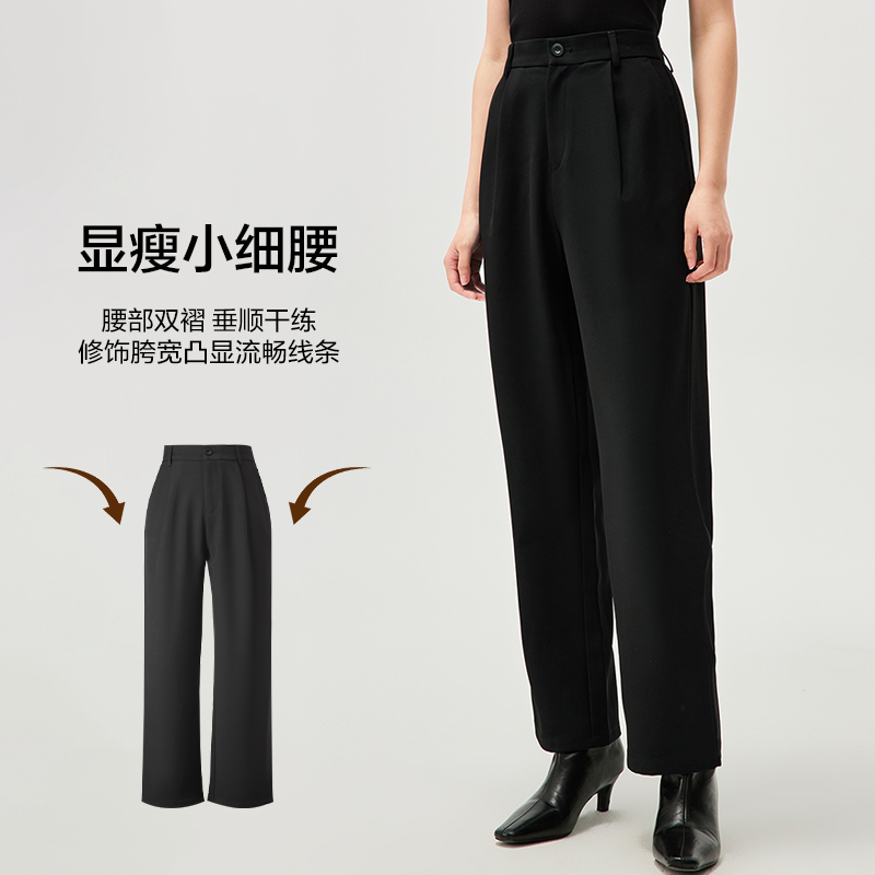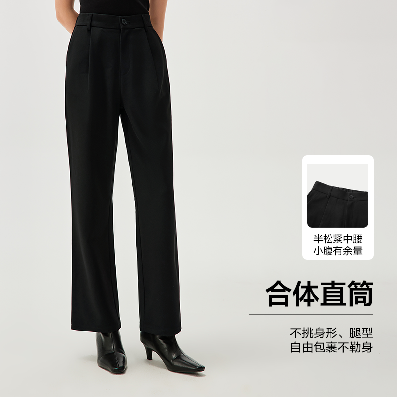 HLA/海澜之家商务西裤2024春秋新款直筒腰部双褶优雅裤子女装