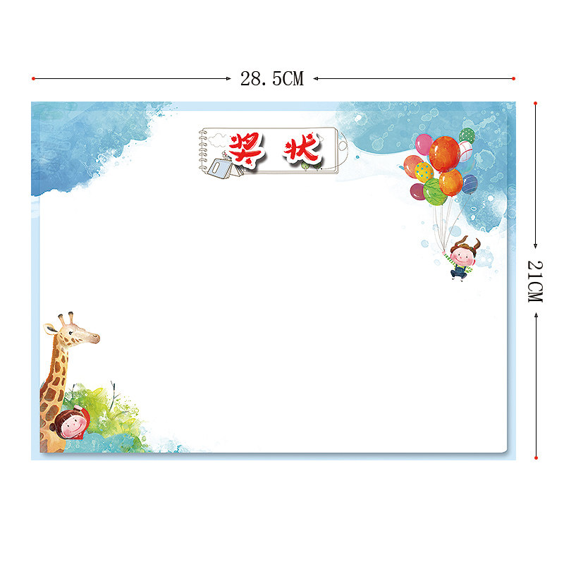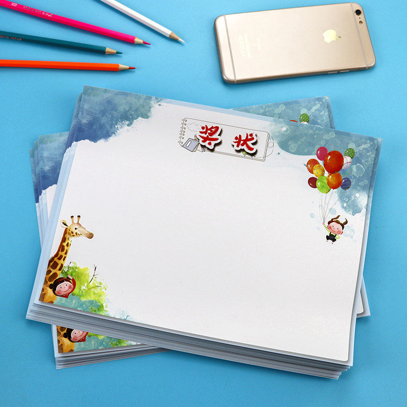 长颈鹿空白幼儿园 小学生 奖状纸 加厚 创意 个性 卡通多款混装 舞蹈 绘画 小奖状表扬信父亲节奖状 可定制
