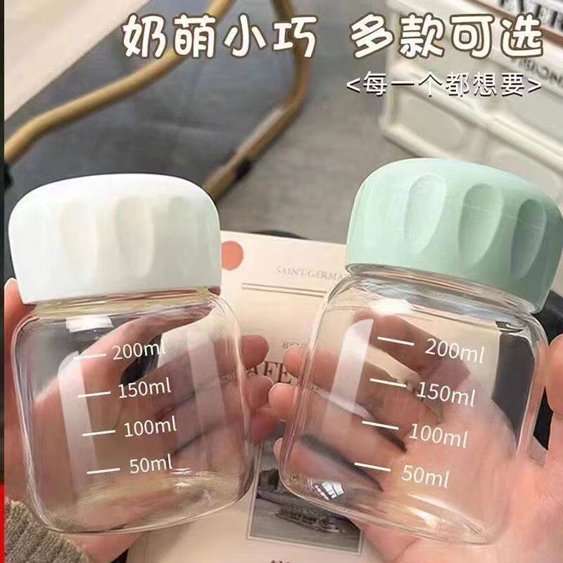 玻璃水杯胖胖杯女便携高颜值带盖迷你透明豆浆杯带刻度牛奶小巧