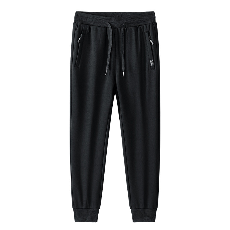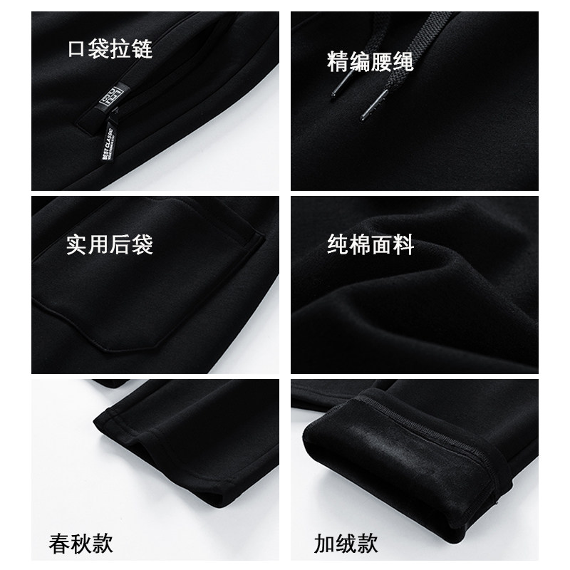 准者直筒宽松运动长裤秋冬新款男士休闲跑步篮球黑色针织加绒卫裤