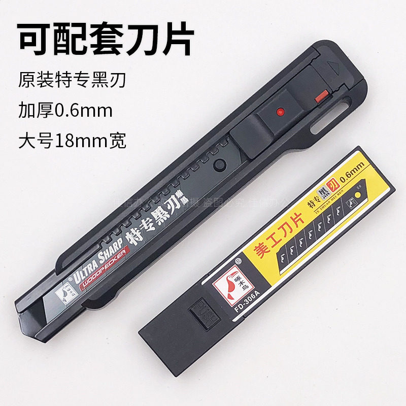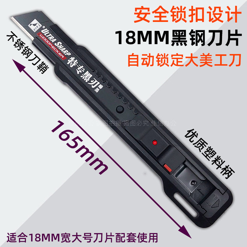啄木鸟7822大美工刀18MM黑钢刀片加厚壁纸刀架裁皮裁纸工具介刀具
