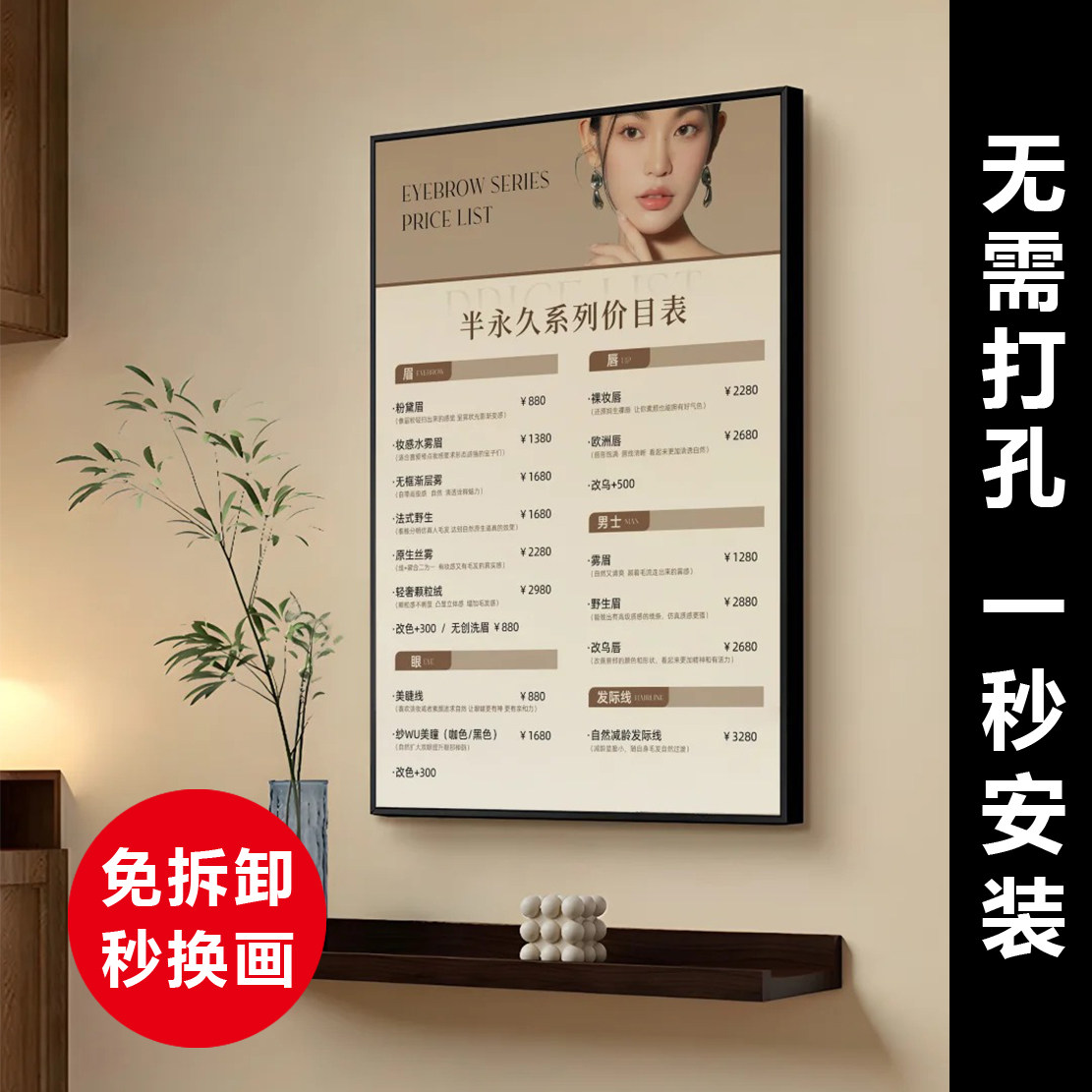 美睫展示板美容美甲价目表设计定制墙面装饰挂画纹绣价格表展示牌