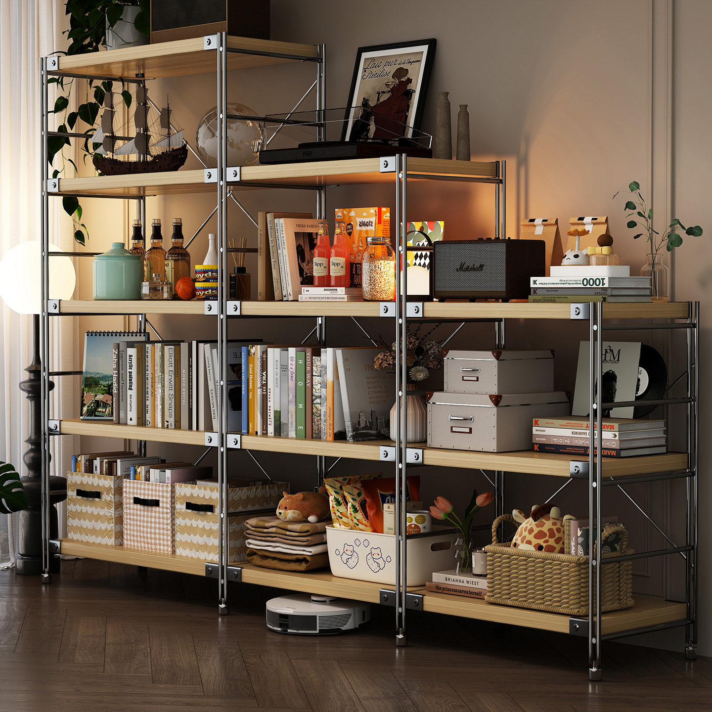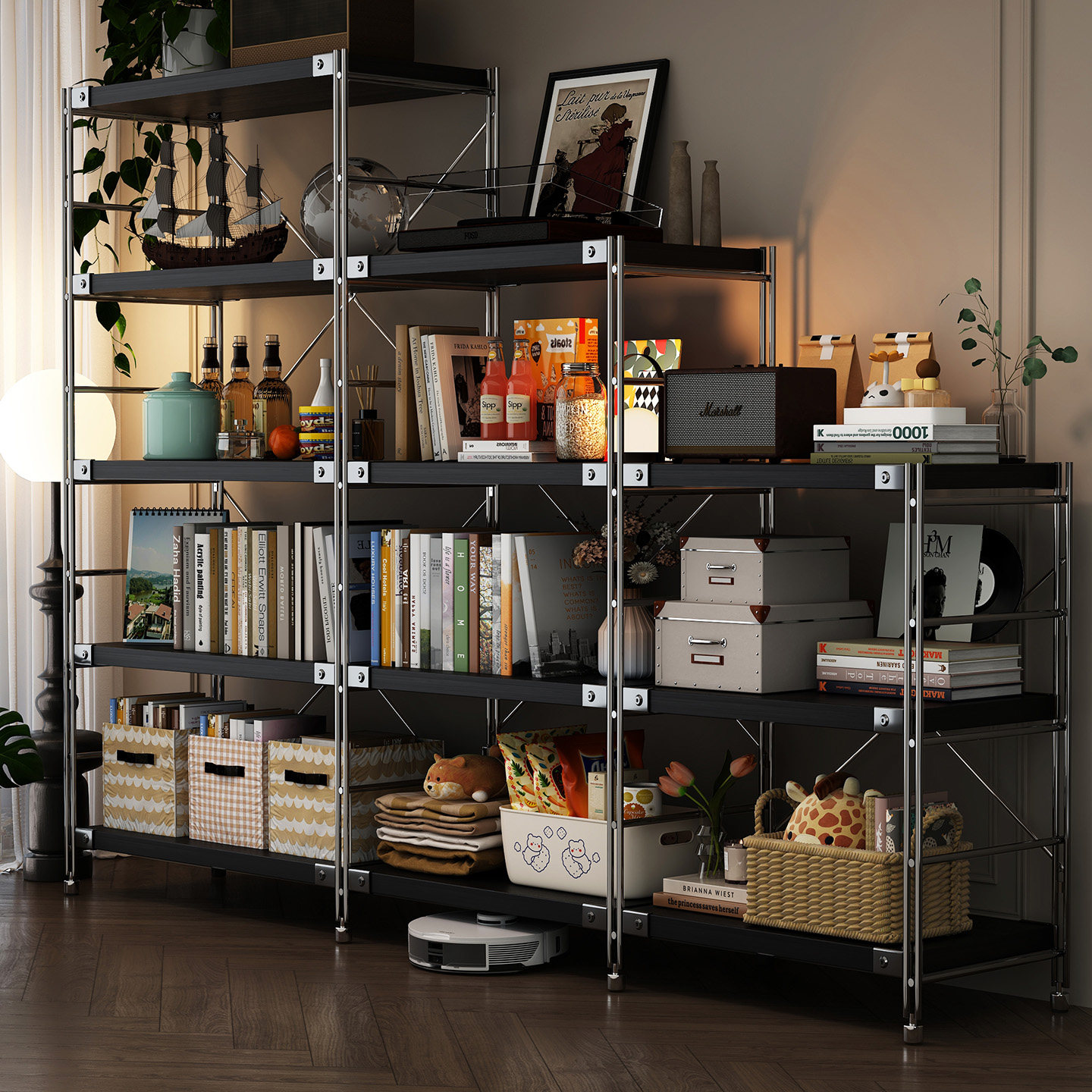 日式置物架落地光轴客厅多层收纳架子厨房阳台储物书柜小货架黑色