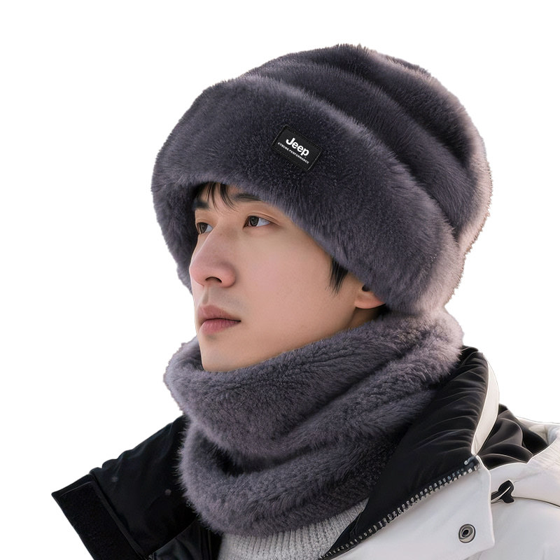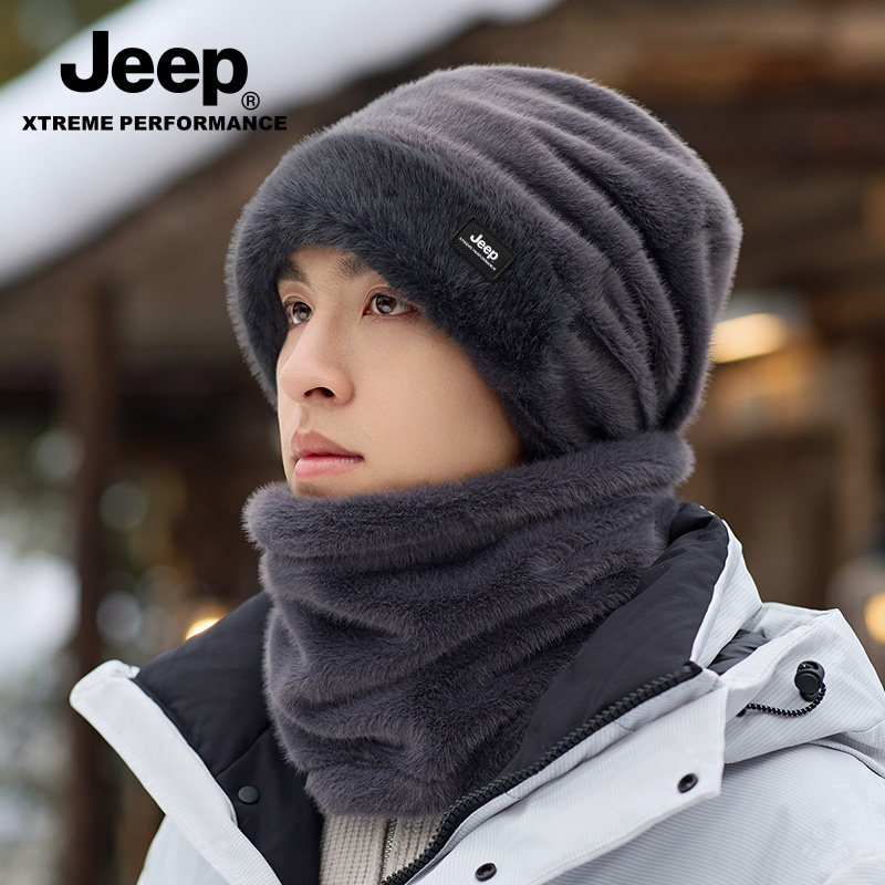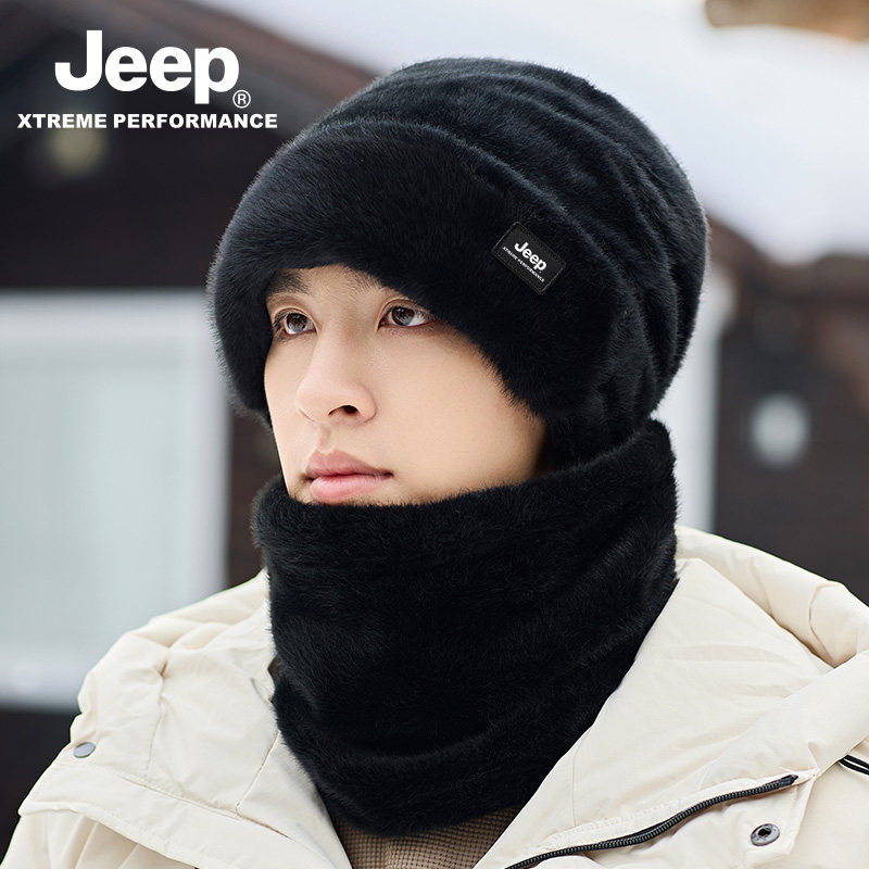 jeep吉普套头帽子男士冬季骑车加绒防风保暖护耳护颈围脖套装男冬
