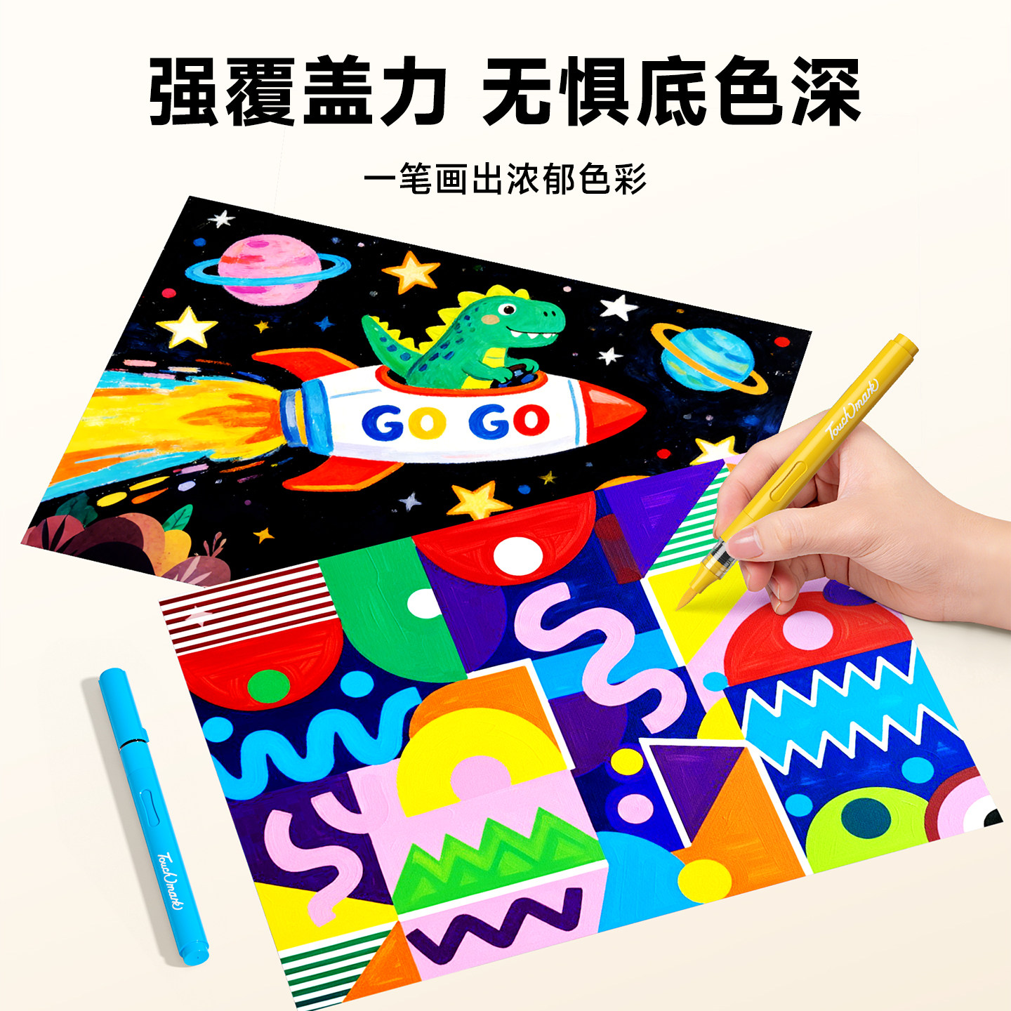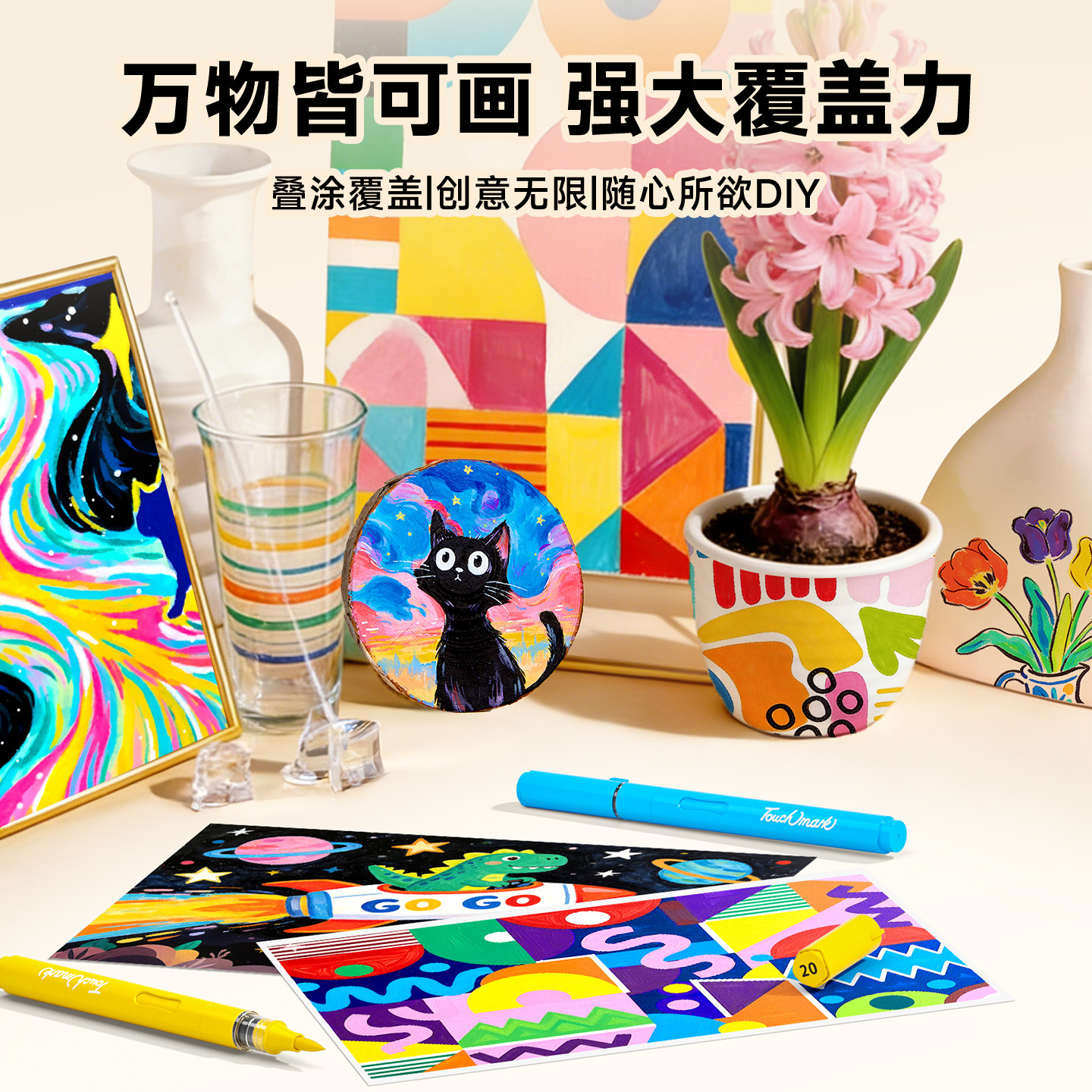 touchmark丙烯马克笔直液式软头不透色可叠色小学生美术专用水彩笔24色36色儿童无毒画笔动漫涂鸦手帐丙烯笔