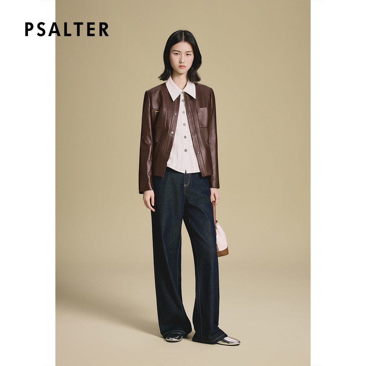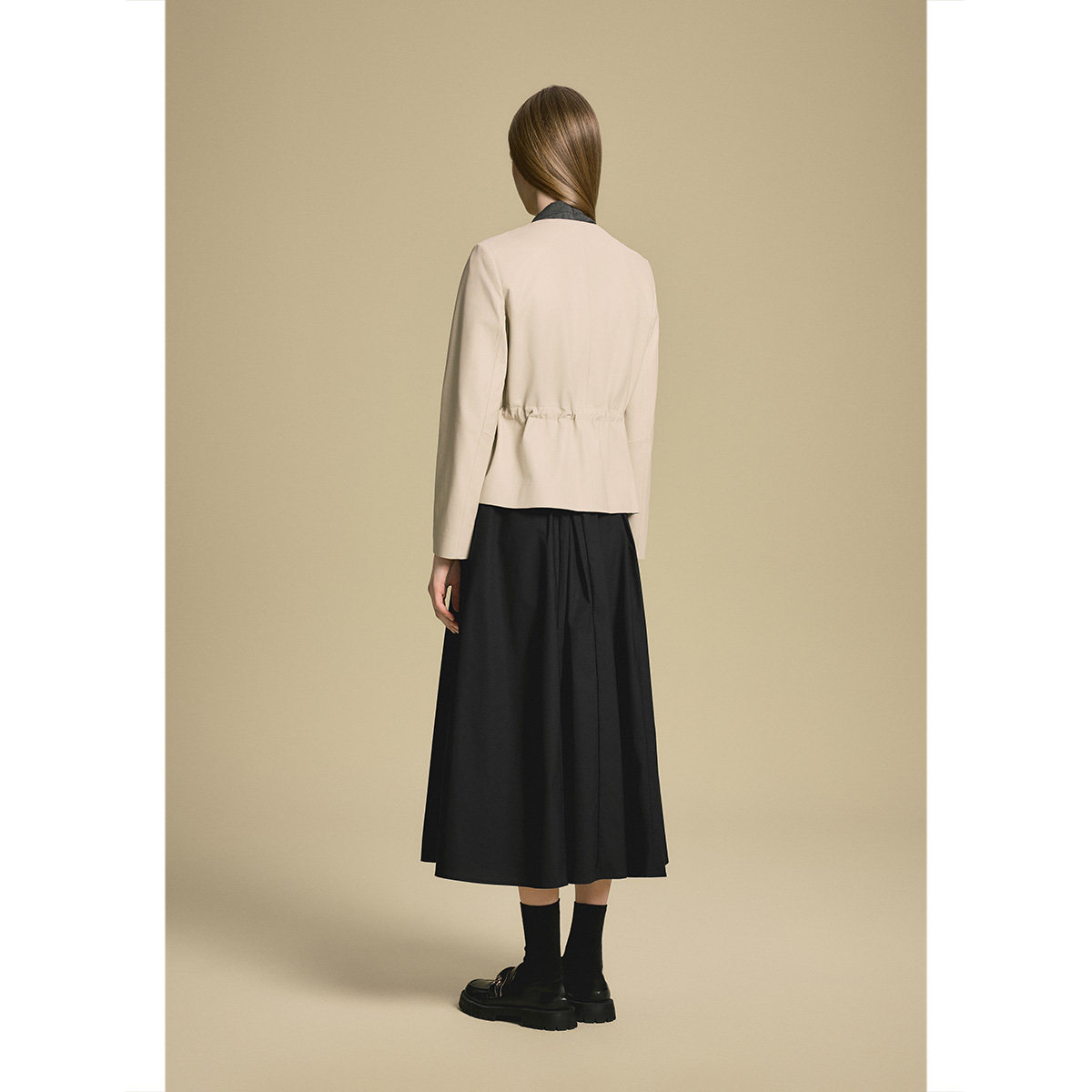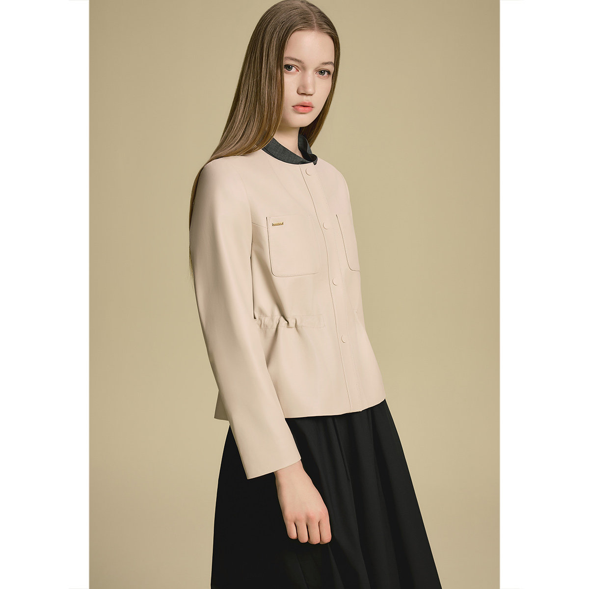 诗篇专选绵羊皮小香风圆领抽绳收腰显瘦皮衣外套2025秋款