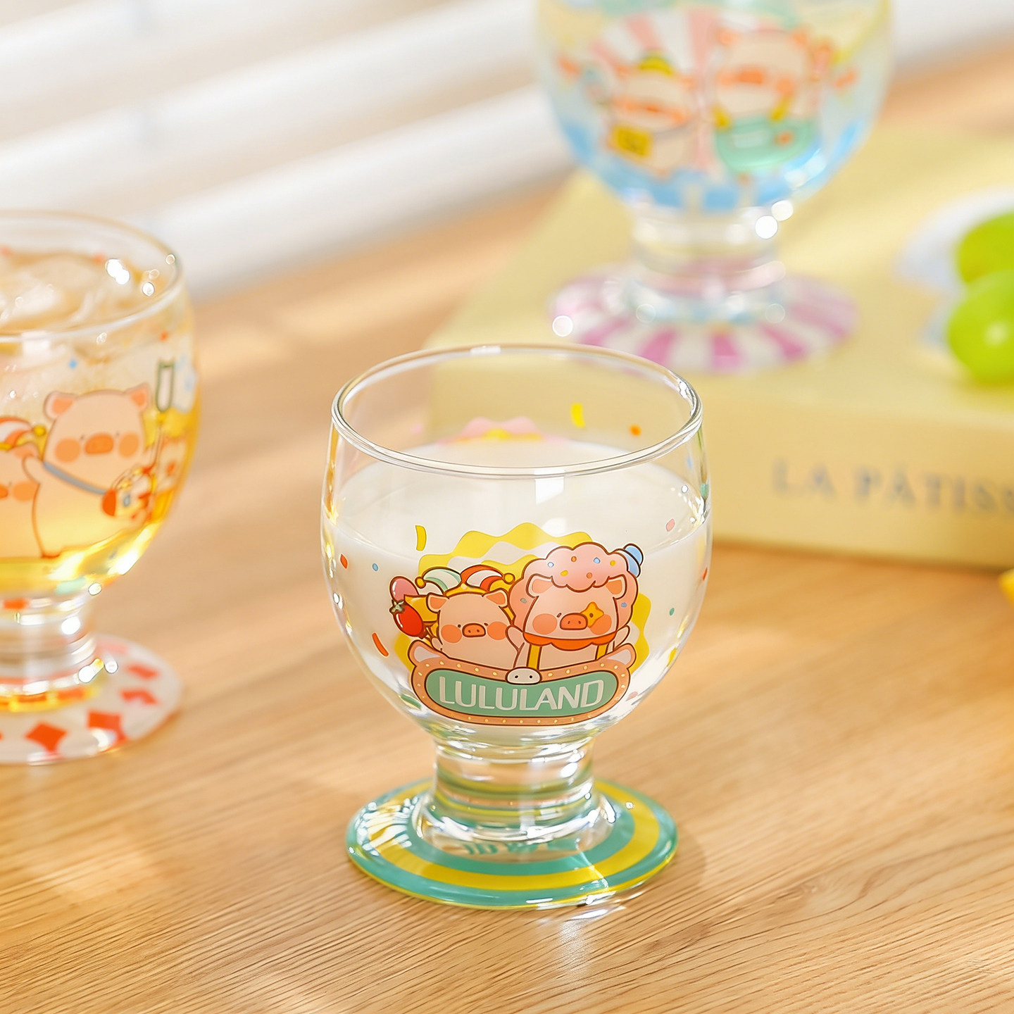 川岛屋&lulu猪联名 高脚玻璃杯女高颜值可爱水杯咖啡果汁啤酒杯子