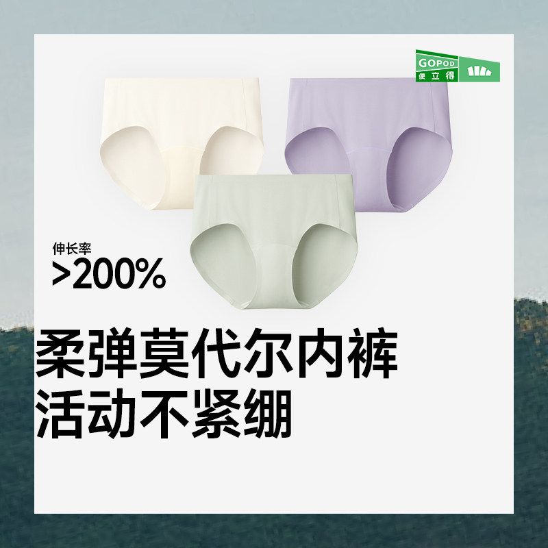蕉下旗舰店纯棉莫代尔内裤女高弹抗菌纯棉档三角裤透气不夹臀短裤
