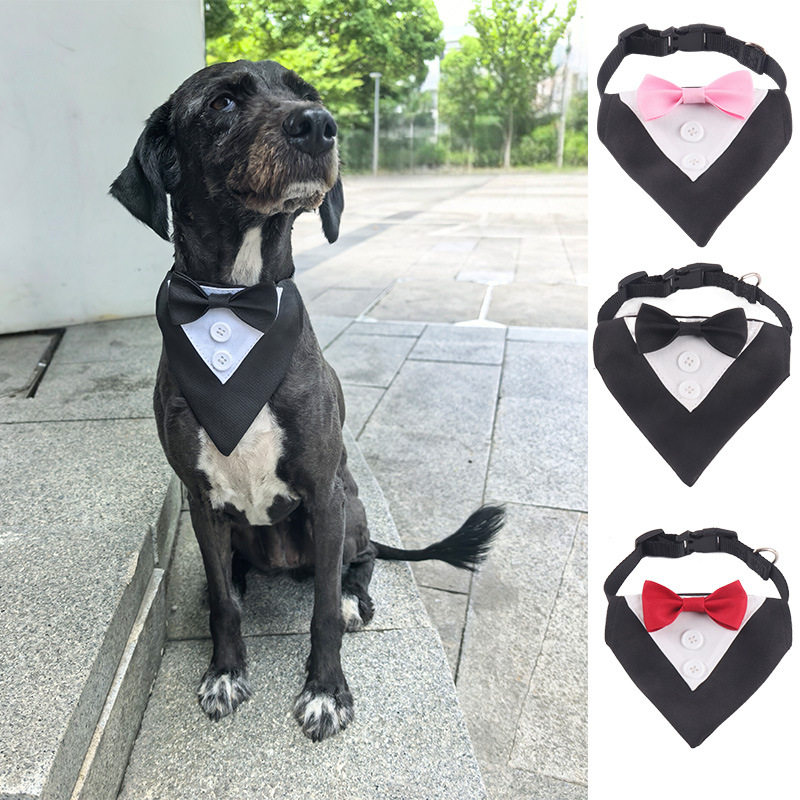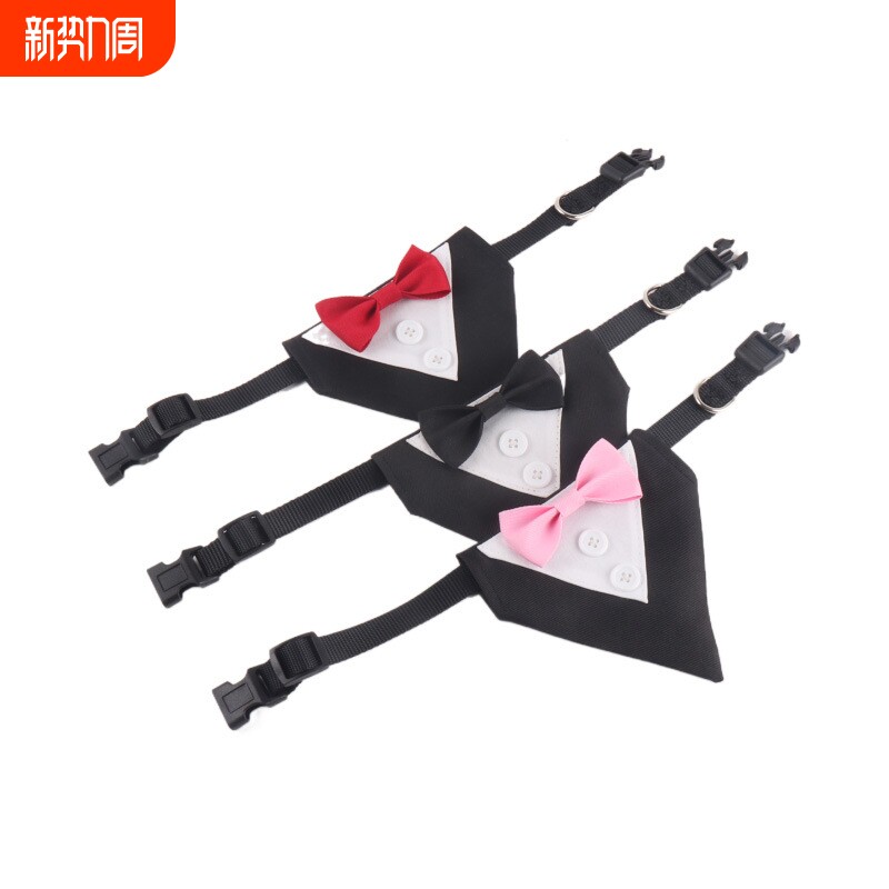阿明格新款宠物用品 绅士风英伦纽扣蝴蝶结三角巾狗项圈婚礼配件