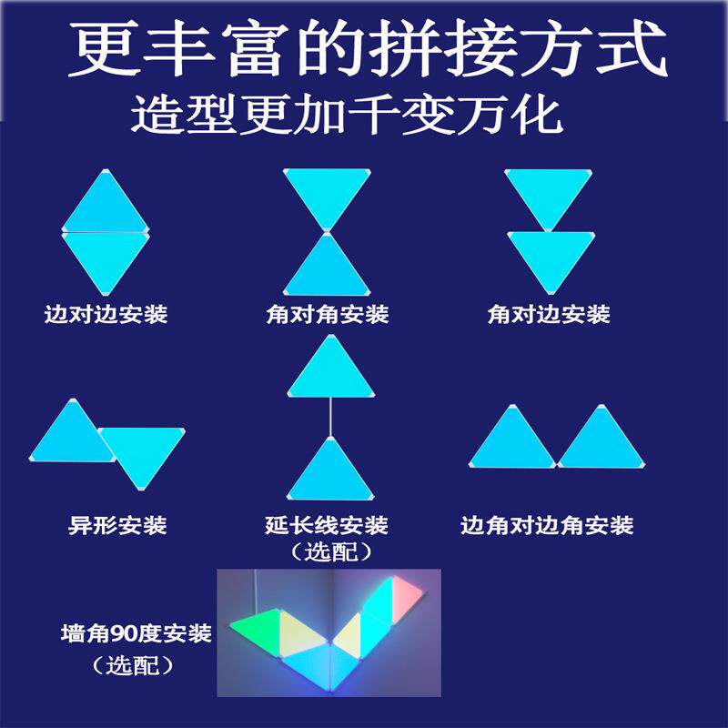 智能奇光板拾音节奏音乐量子灯三角拼接墙灯电竞氛围灯壁灯饰品