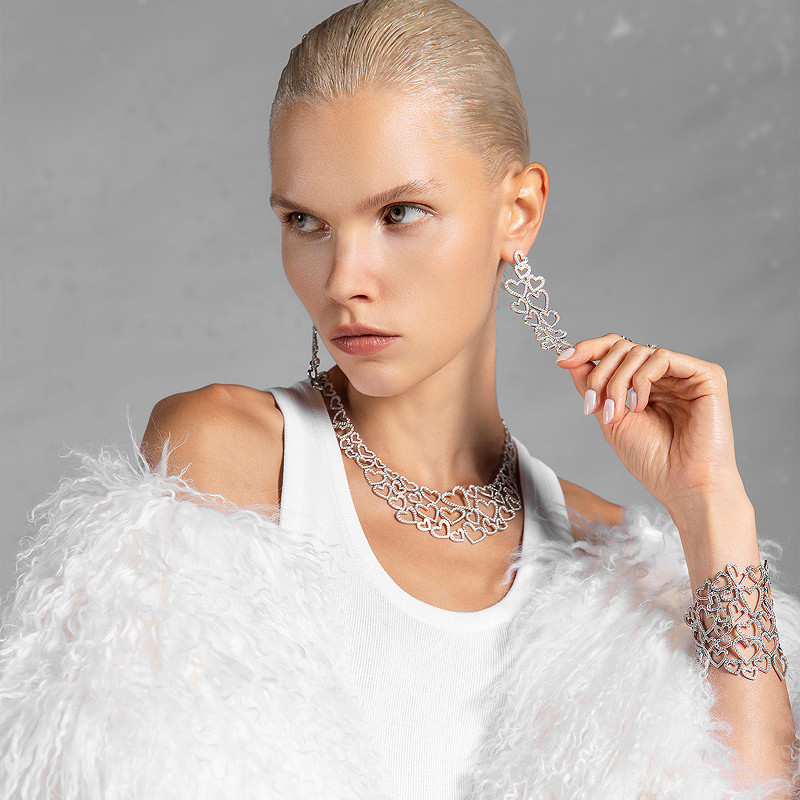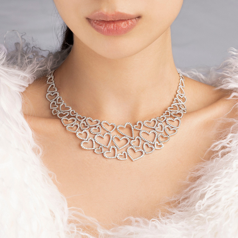 [杨紫同款]APM Monaco个性爱心项链银白密镶镂空首饰送人生日礼物