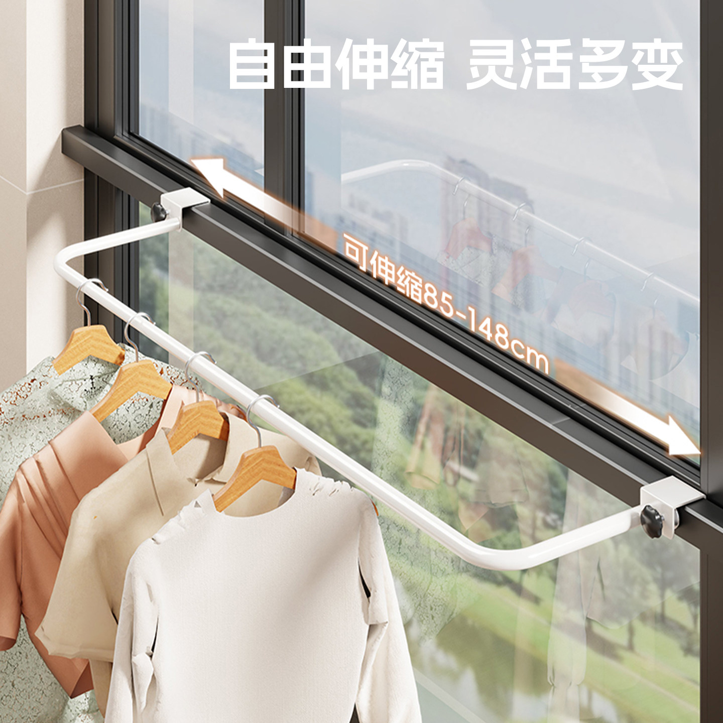 阳台晾衣架防盗窗可伸缩晒衣架宿舍护栏杆挂衣架家用多功能晾晒杆