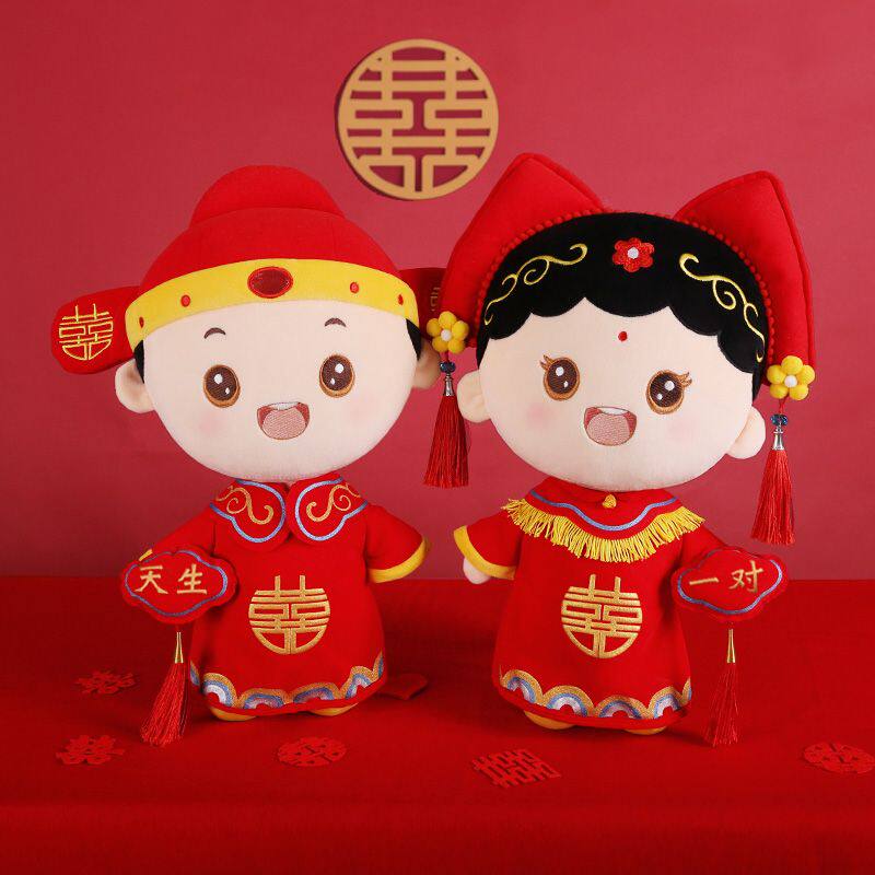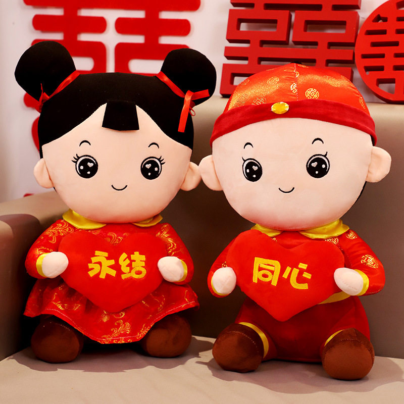 压床娃娃一对结婚新款高档礼物金童玉女中式新婚喜娃大号婚庆抱枕