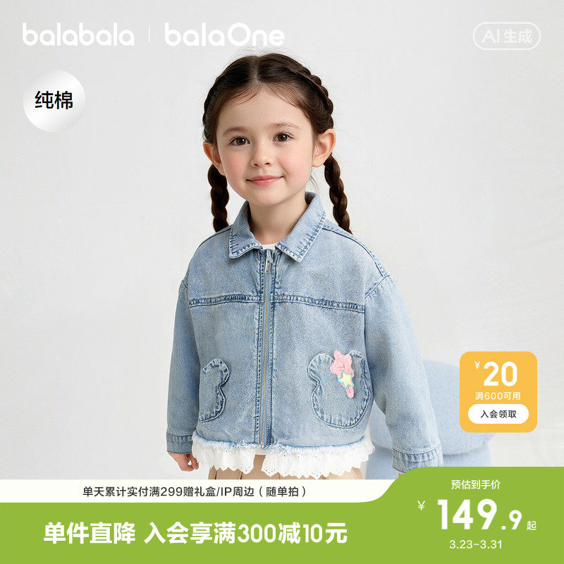 巴拉巴拉童装儿童外套男女童2026新款春秋装季男生牛仔上衣时髦潮