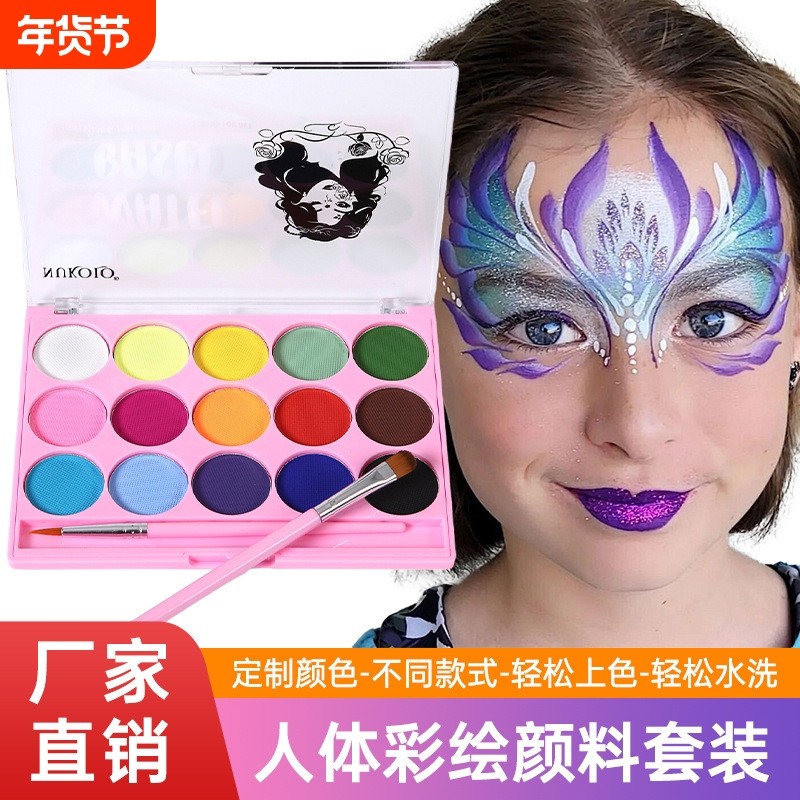 水溶性脸彩15色人体彩绘颜料儿童脸彩万圣节脸部彩妆水性脸彩