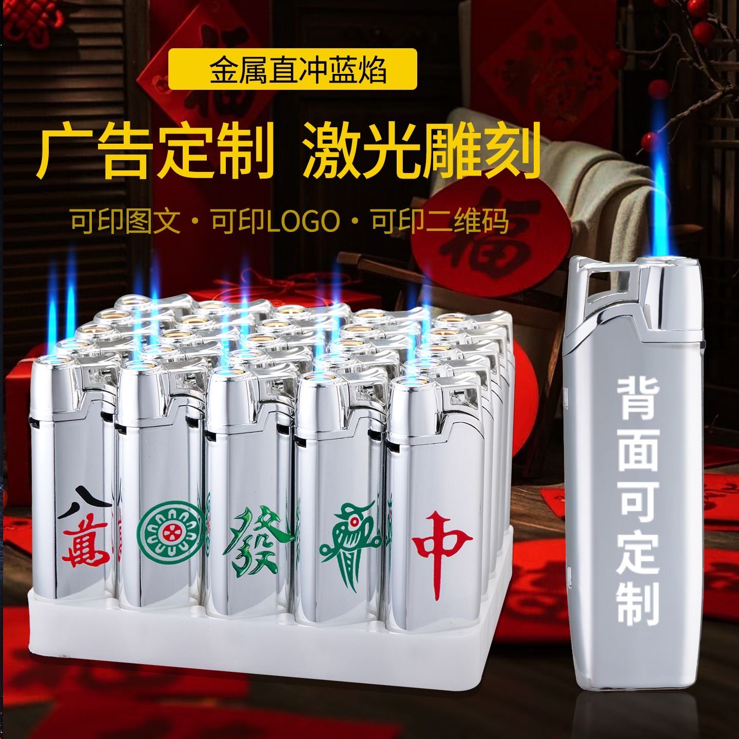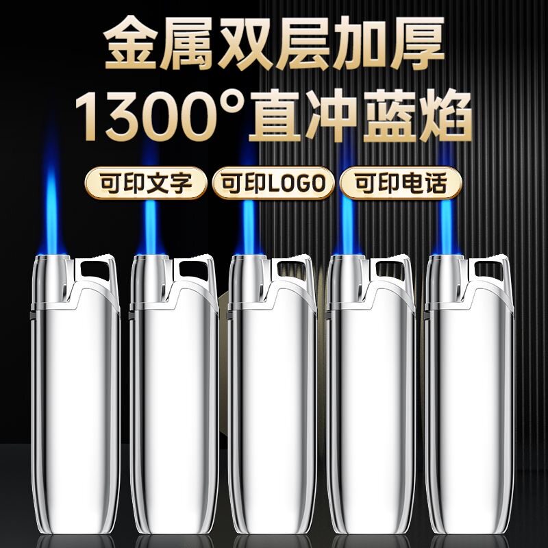 金属直冲蓝焰防风防爆充气耐用印字打火机家用商超便利店批发火机