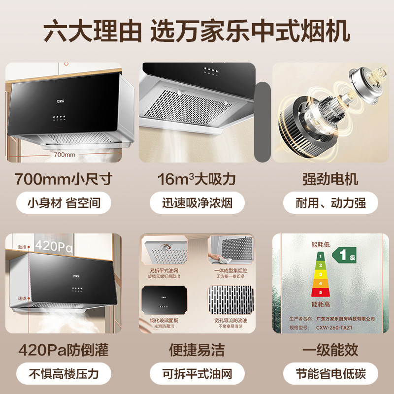 万家乐AZ1烟灶套装中式吸抽油烟机燃气灶具套餐家用厨房旗舰店
