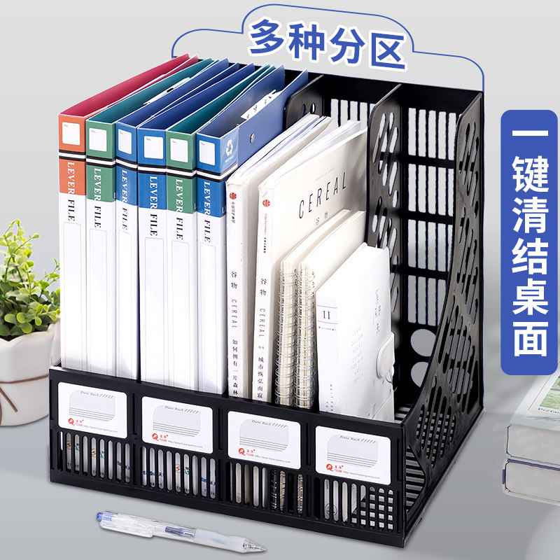 办公用品富强文件架四联塑料书架桌面资料整理架简约文件栏框收纳架A4大号多功能文件夹批发