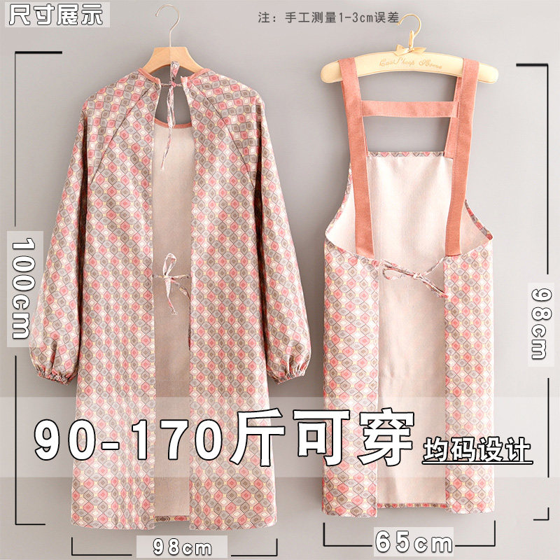 2026日本新款棉麻长袖围裙家用厨房透气罩衣女耐磨防污做饭工作服