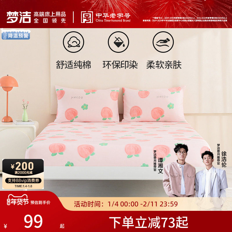 梦洁家纺床笠单件纯棉全棉学生宿舍床罩床垫保护罩单双人床上用品