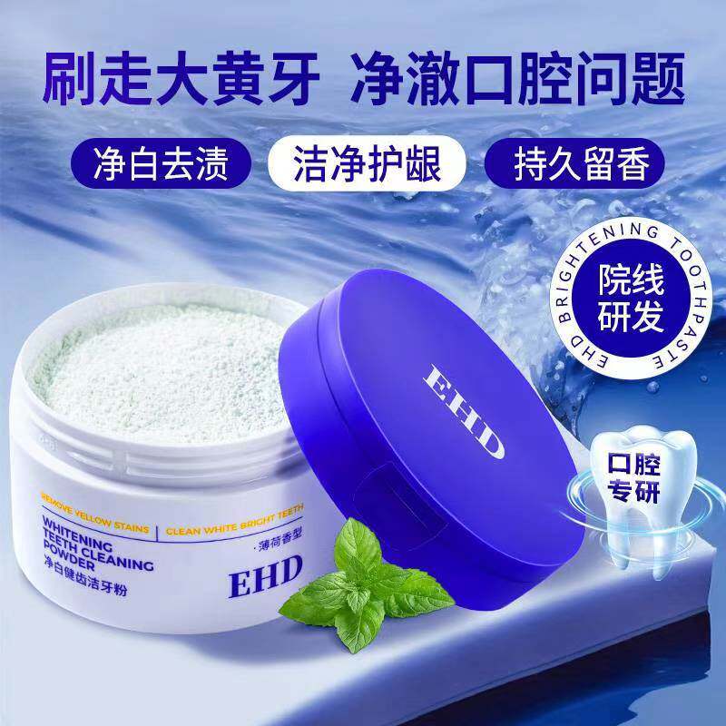 EHD洁牙粉去黄洗白清洁牙垢去牙渍黄牙薄荷香型洗白烟渍亮白正品
