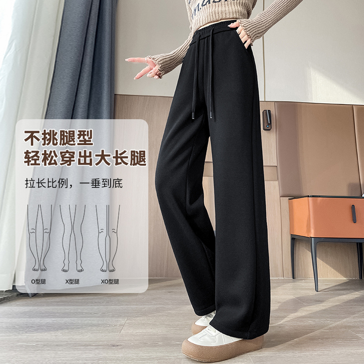 唐狮DESSO秋冬新款糯米裤高腰垂感宽松加绒直筒阔腿裤5