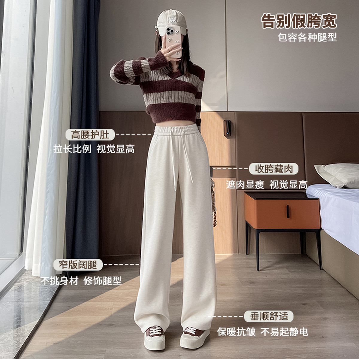 杨幂同款SIINSIIN2025新款白色加绒直筒裤女冬季厚显瘦运动小个子