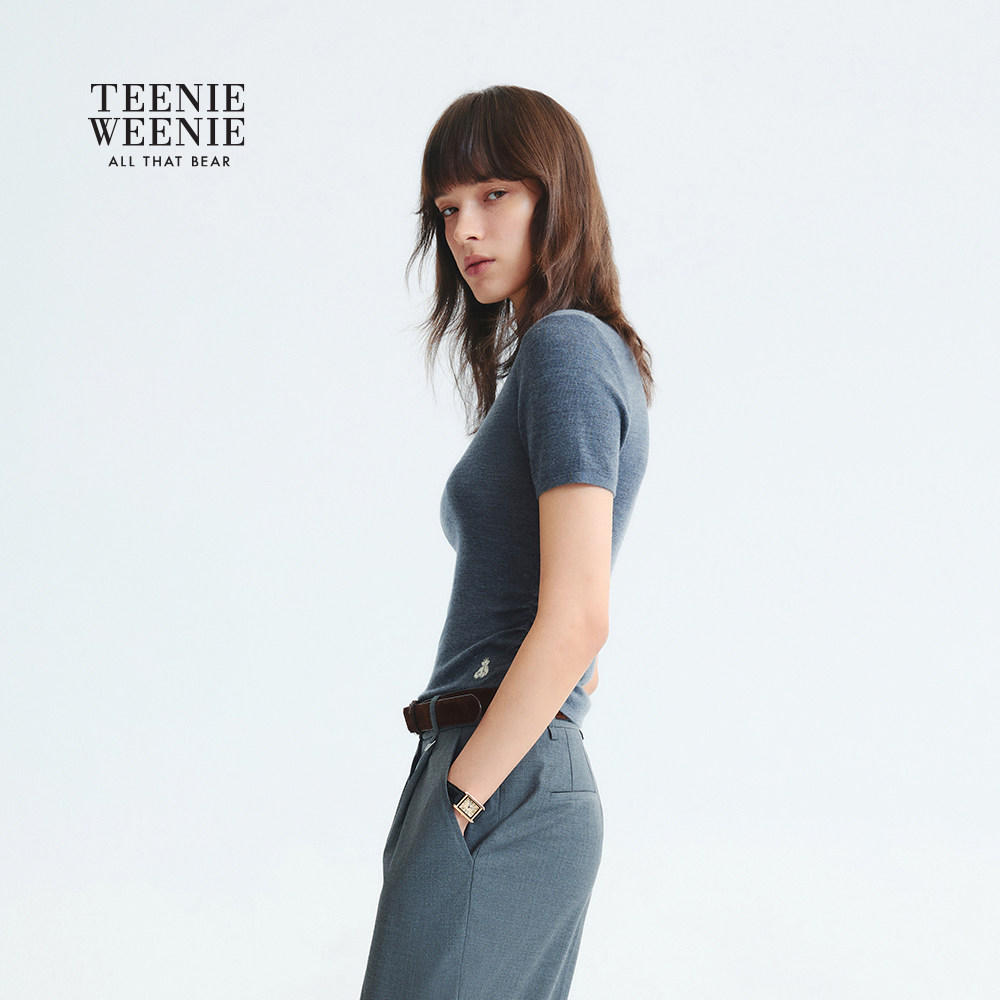 【美利奴羊毛+可机洗】TeenieWeenie小熊女25年秋款半高领短袖T恤