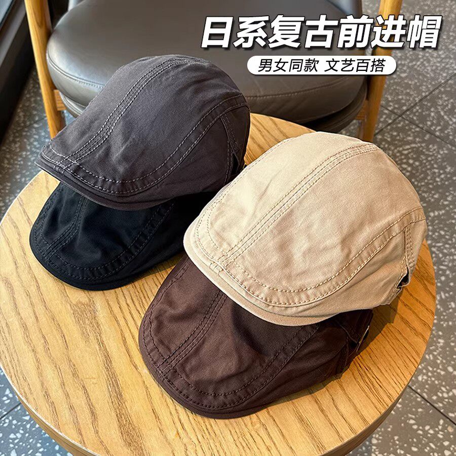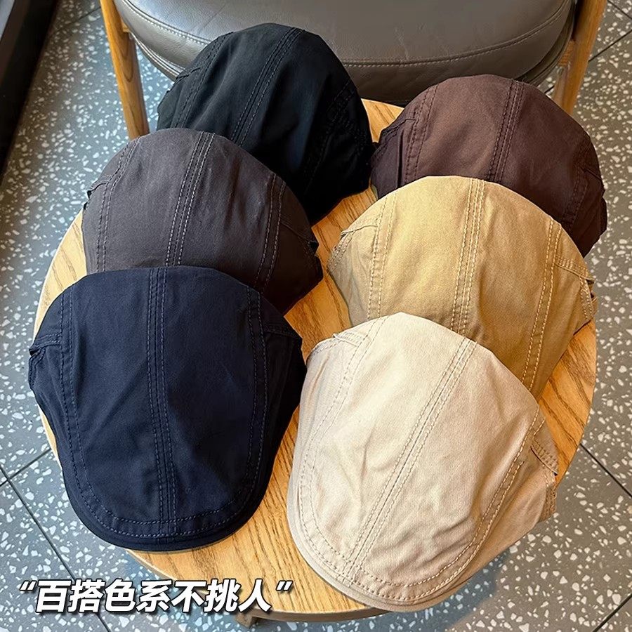 四季款纯棉前进帽纯色复古英伦风报童帽女士简约百搭文艺贝雷帽男