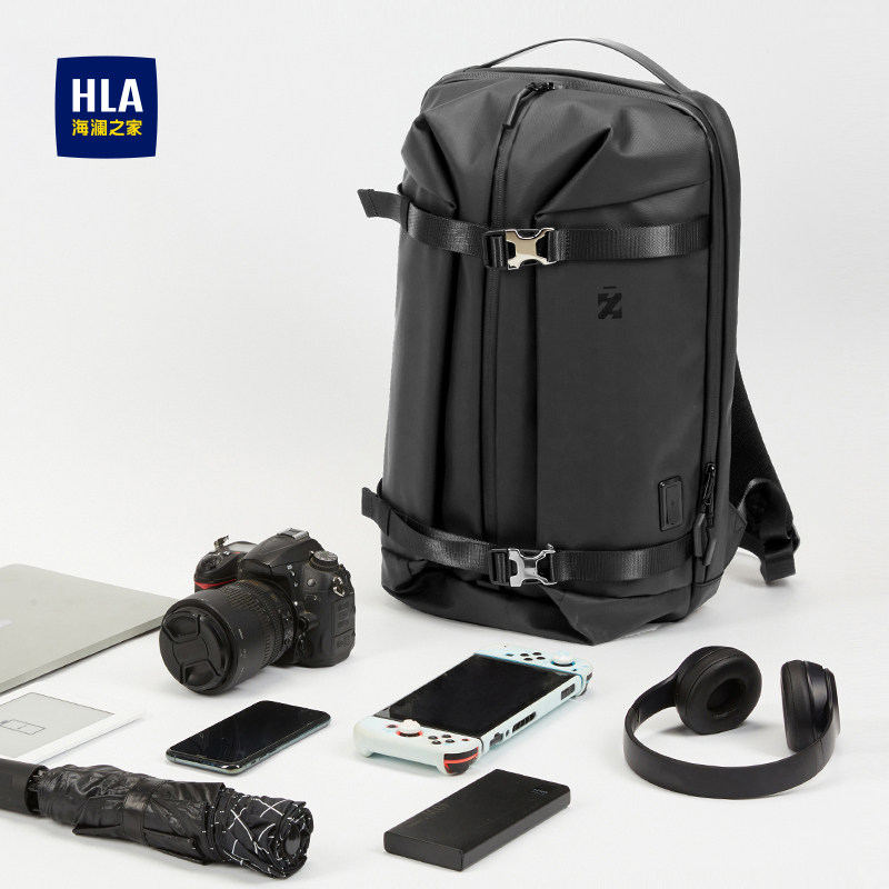 HLA/海澜之家户外防水双肩包男背包多功能充电书包休闲百搭旅行包