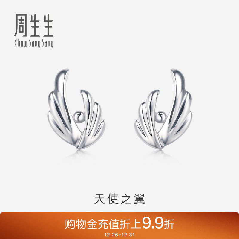 周生生Pt950铂金耳环圆珠天使之翼铂金耳钉耳饰38679E