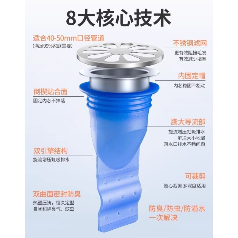 地漏防臭器内芯卫生间下水道防返臭防反味神器硅胶地漏盖防臭商用