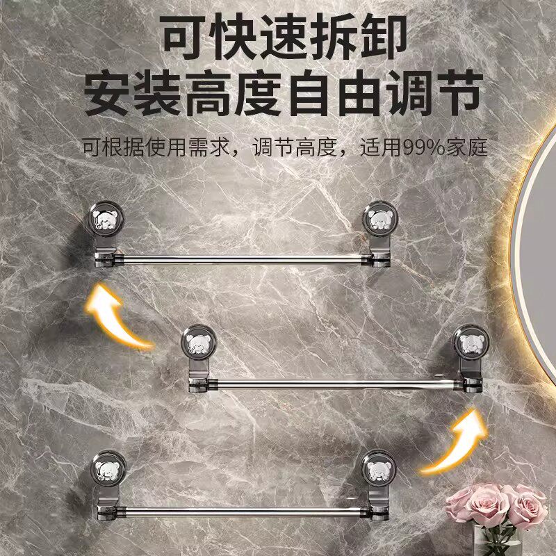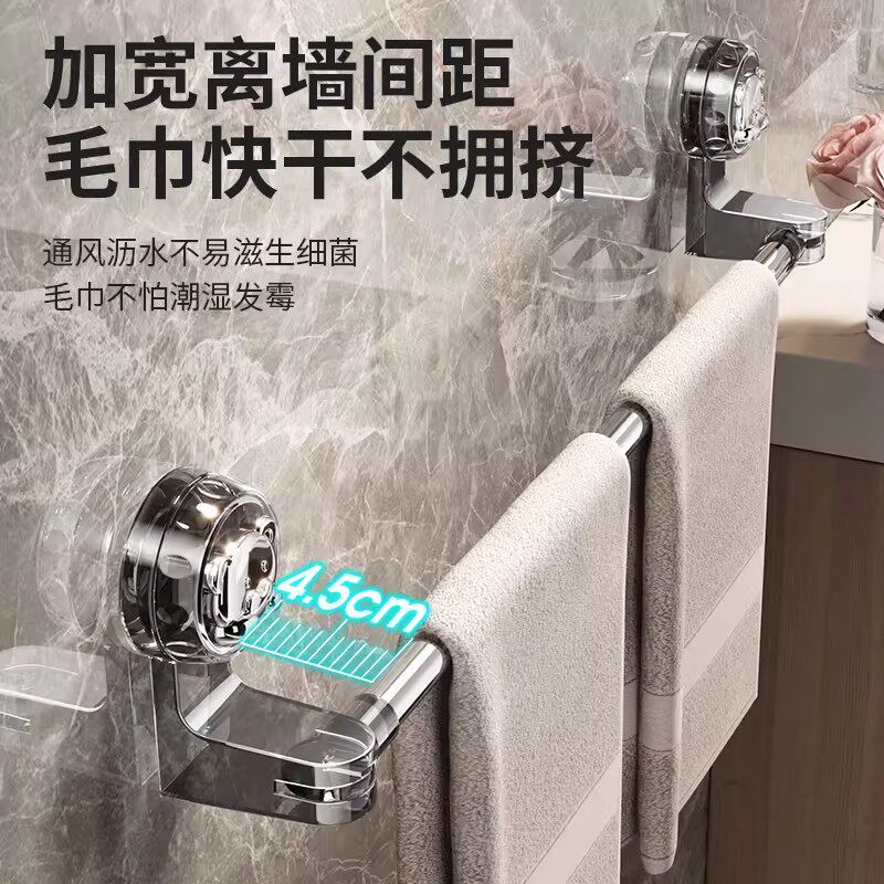 吸盘毛巾架子卫生间免打孔浴室毛巾拖鞋收纳挂架壁挂洗手间单双杆