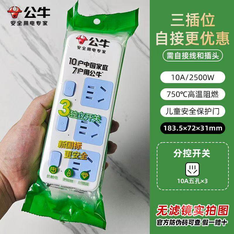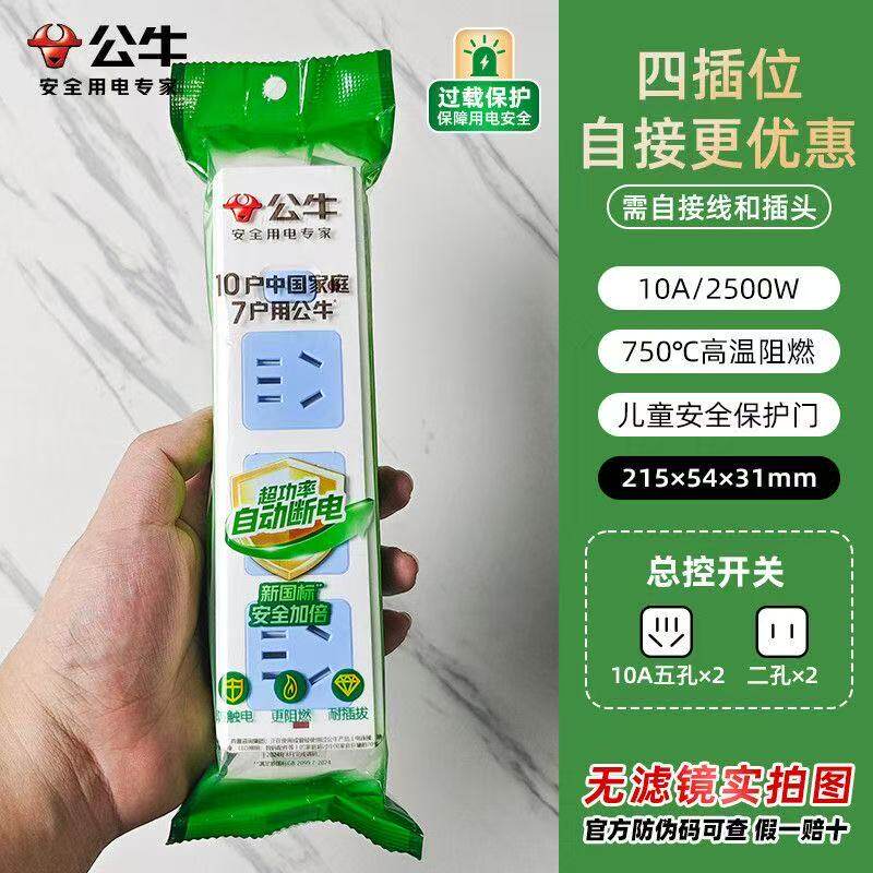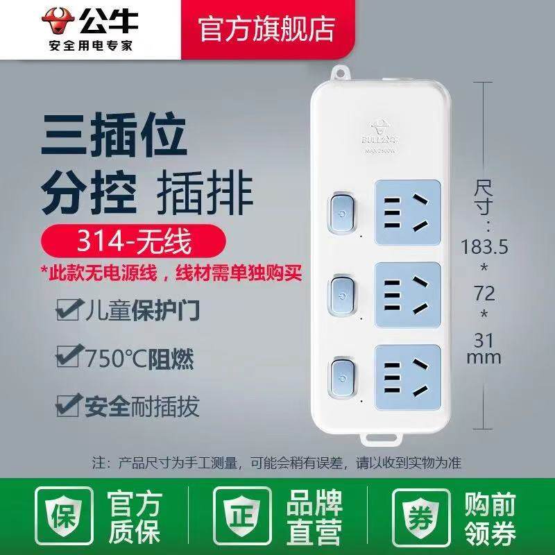公牛排插插座无线自接线款不带线弱电箱过载摔不烂条形