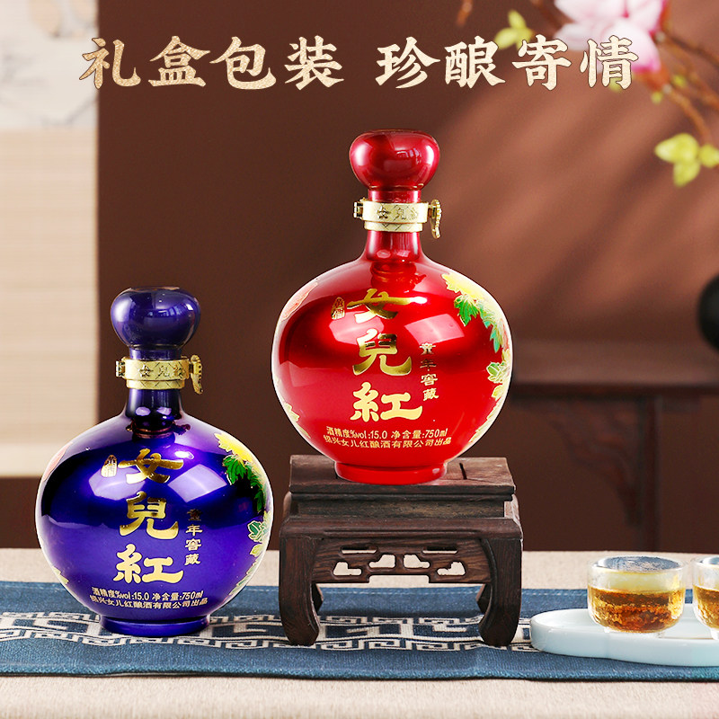 绍兴女儿红黄酒糯米花雕酒绍兴地道老酒750ml*6瓶装整箱500ml*8瓶