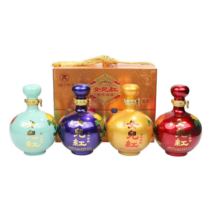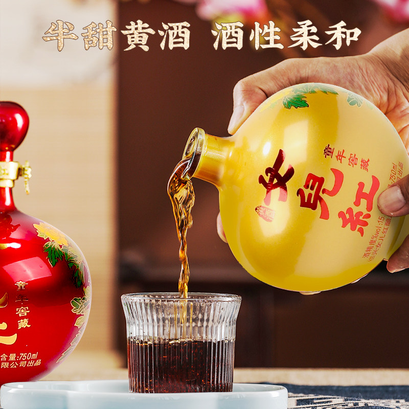 绍兴特产女儿红黄酒童年窖藏花雕酒750ml*4瓶整箱礼盒装半甜型