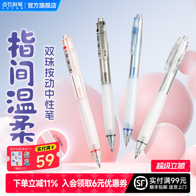 点石制笔按动中性笔0.5mm黑红蓝芯指间温柔双珠速干顺滑子弹头刷题笔办公学生用书写练字签字笔 DS-0111