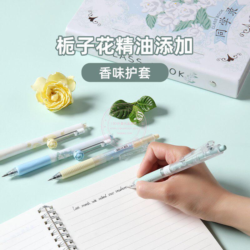 晨光栀子花开香味中性笔套装速干大容量学生0.5黑签字笔 HAGP2412