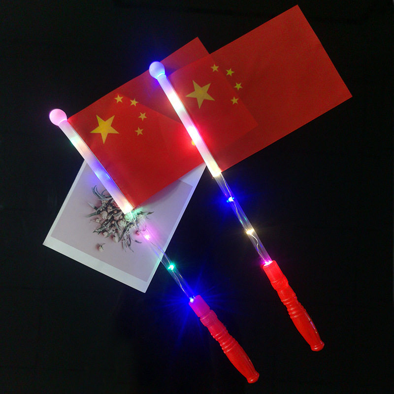 国庆五星国旗红旗发光旗子小学生奖品手拿小旗杆桌面摆件装饰彩旗幼儿园儿童手挥旗教师奖励礼物小礼品旗帜