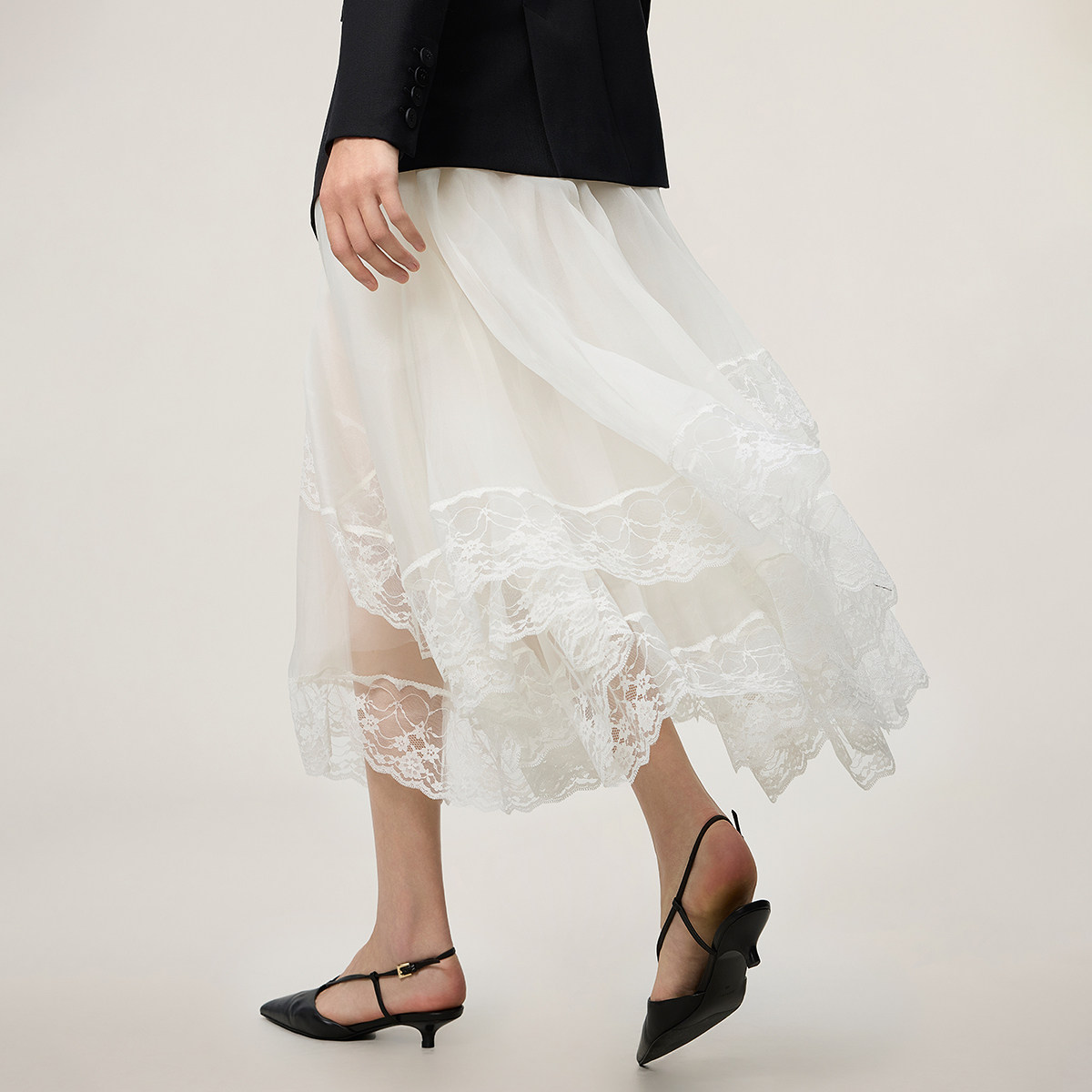 【新品】奚梦瑶同款 欧时力 真丝纱裙不对称蕾丝半身裙伞裙2026春