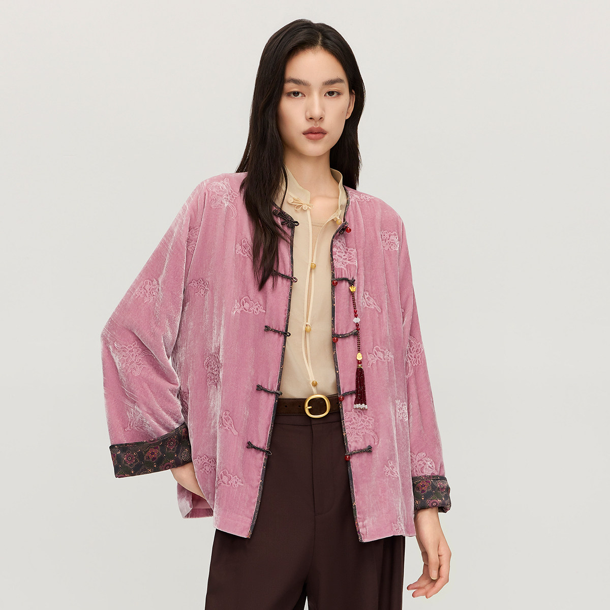 【新品】OCHIRLY欧时力 真丝哑光丝绒刺绣新中式外套盘扣挂链25秋
