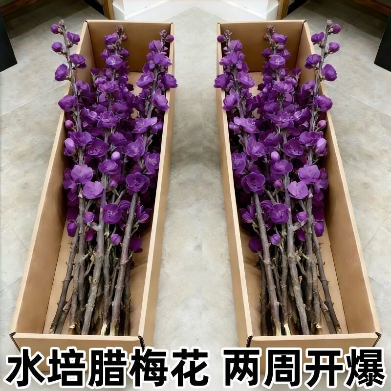 遇水开花鲜枝水培梅花枝带花苞耐寒花卉绿植懒好养花期客厅腊梅花