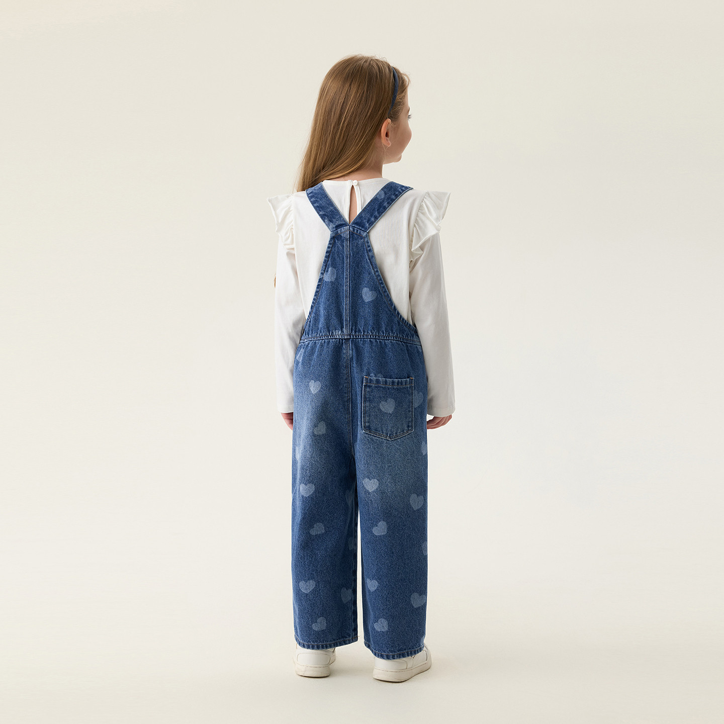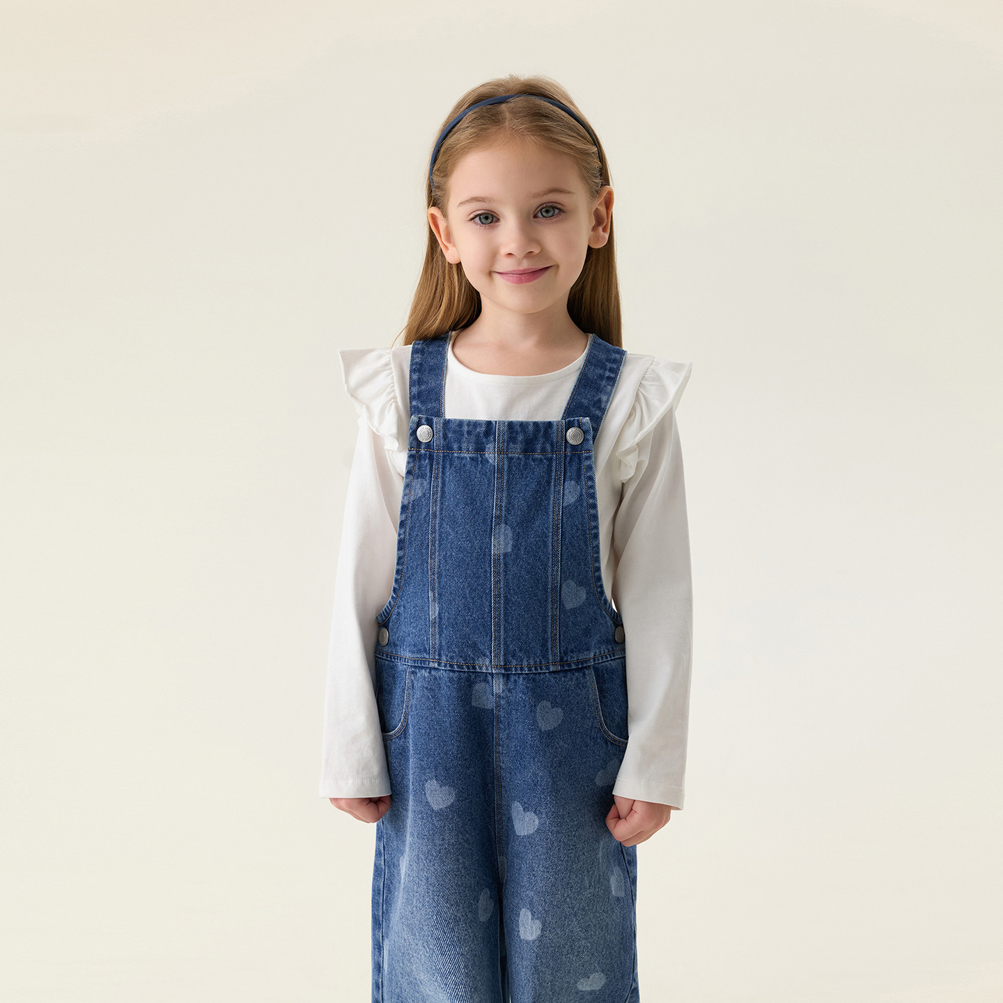 马克珍妮爱心满满女童纯棉牛仔背带裤宝宝裤子2026春装新款560112