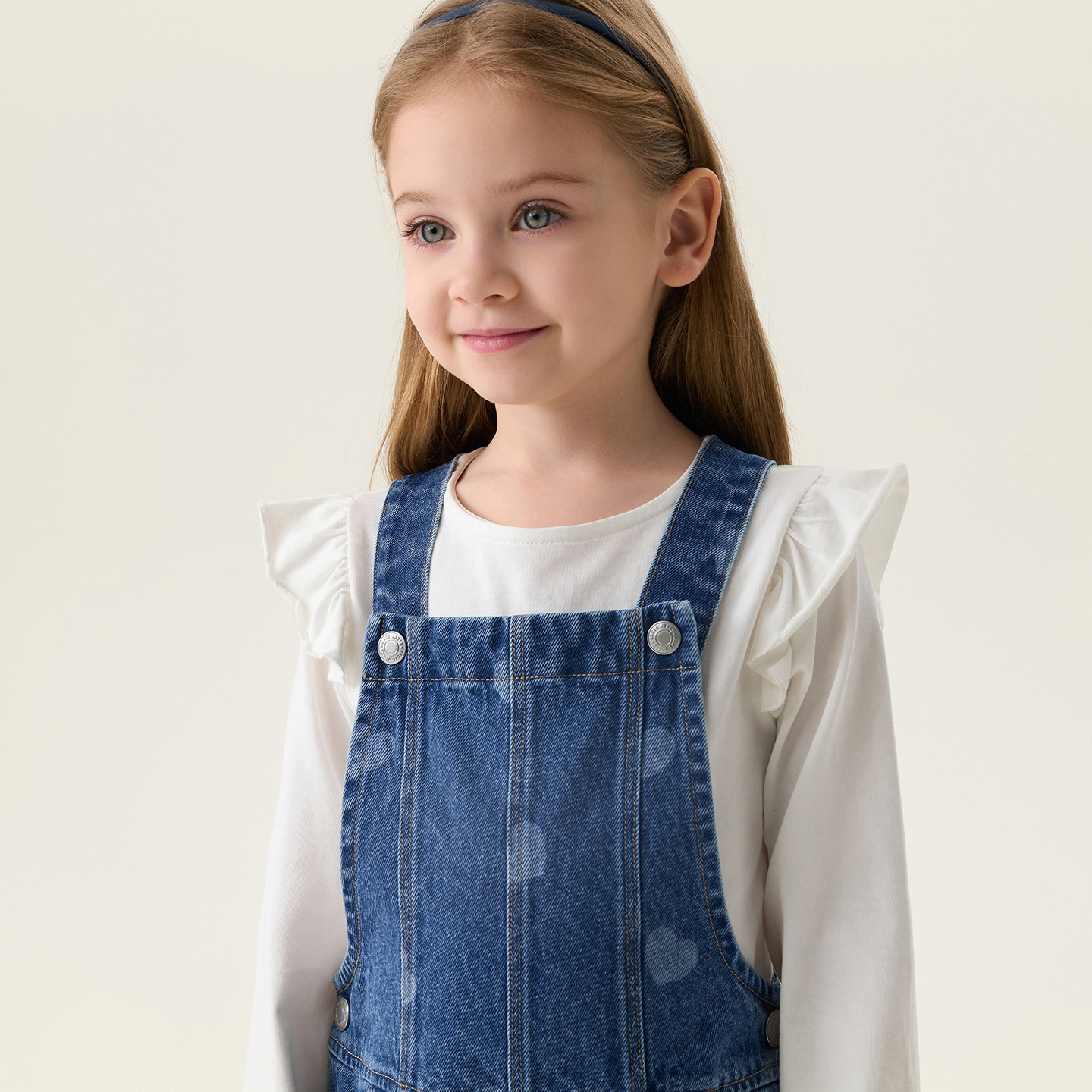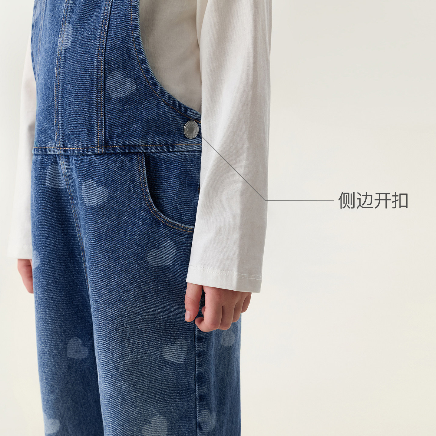 100%牛仔棉,小爱心满印,两侧贴心开扣