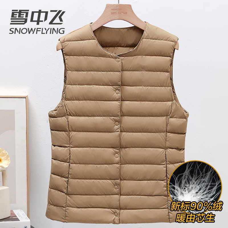 雪中飞羽绒马甲女式轻便保暖内胆背心秋冬内穿坎肩无袖排骨鸭绒服