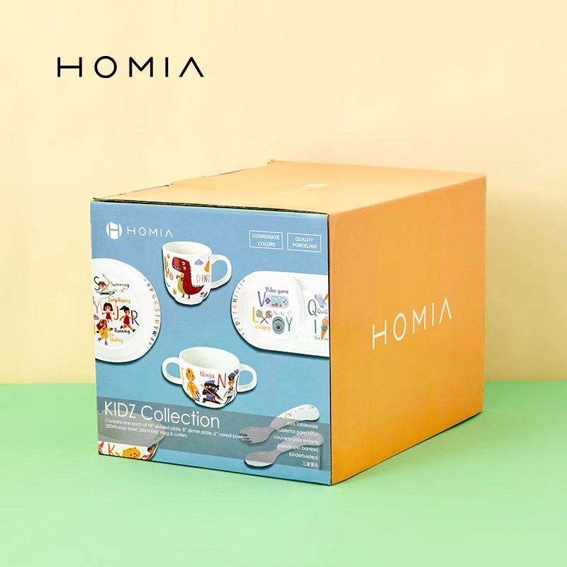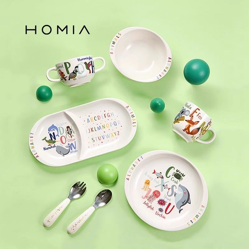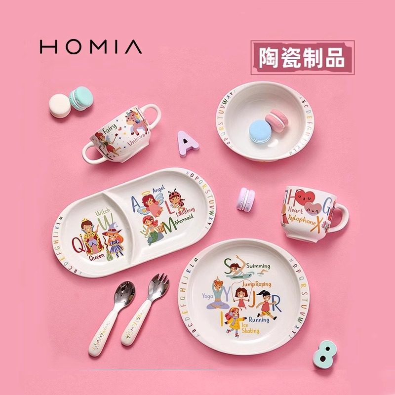 HOMIA可爱卡通釉下彩陶瓷儿童餐具套装男女童宝宝专用吃饭碗碟盘